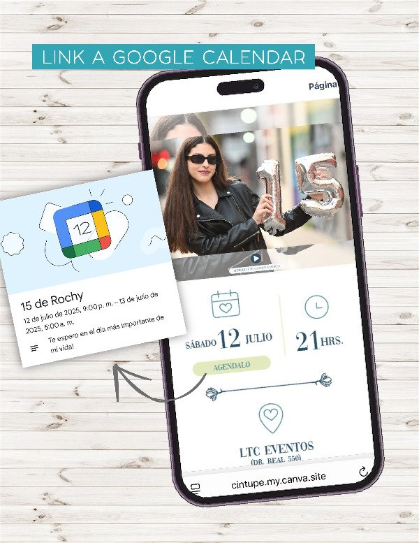Invitación digital con links interactivos totalmente personalizada, lista para enviar por whatsapp.